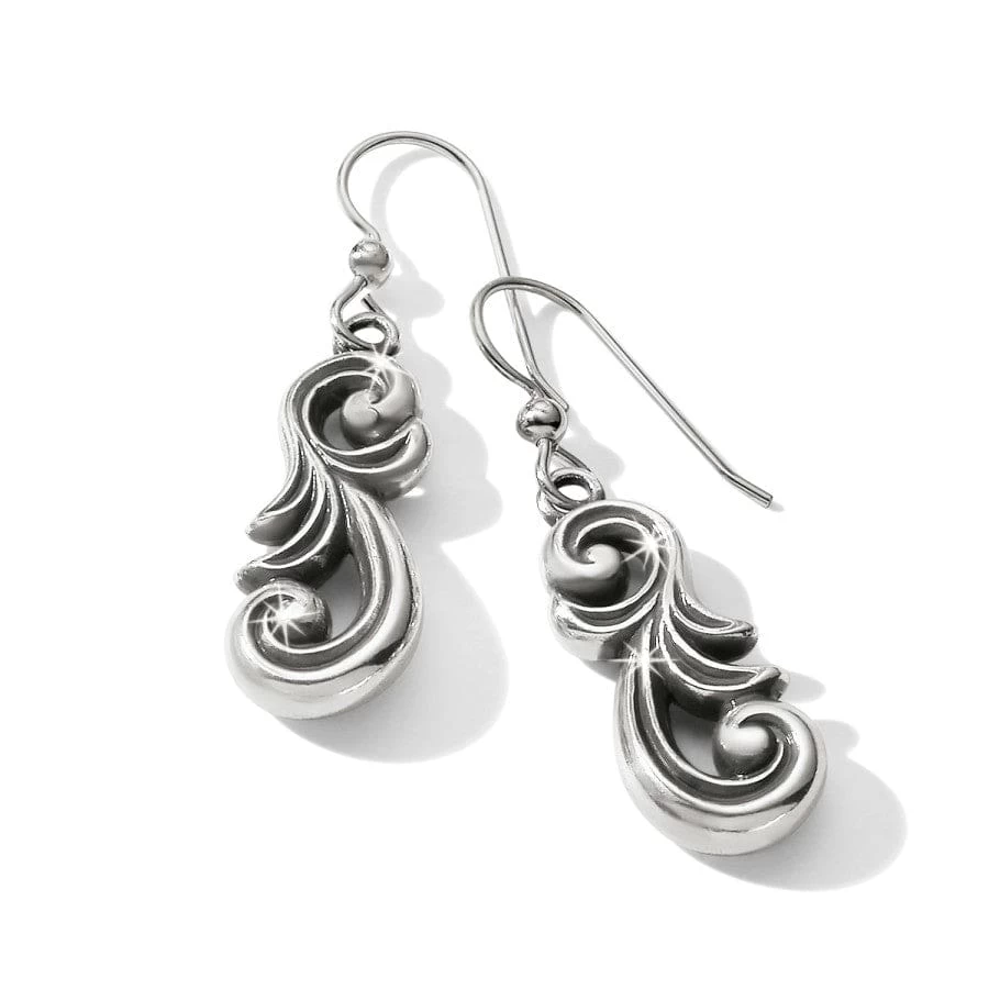 These earrings go back to Brighton’s heritage, which started with all-silver jewelry. Their classic scrolls and polished silver finish with some antiquing are reminiscent of a hand sculpted sterling silver piece.