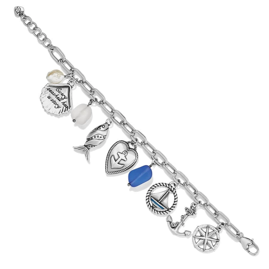 This chunky chain bracelet combines the best of modern and vintage style with its array of silver-plated and hand-enameled charms, and a heart inscribed with, “Let love be your anchor and hope be your sail.”