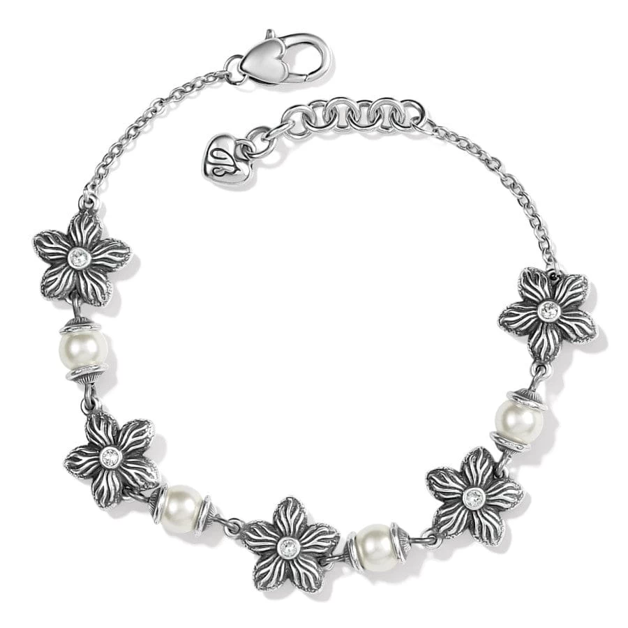 Spring refinement describes this bracelet with its finely etched detail and sculpted petals. A 6mm white pearl is found throughout bringing elegance for a look that will surely be noticed.