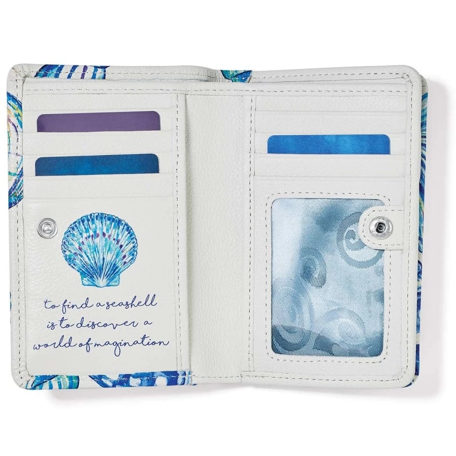This wallet with our designer’s beautiful seashell art has a message on the back, “ To find a seashell is to discover a world of imagination.”