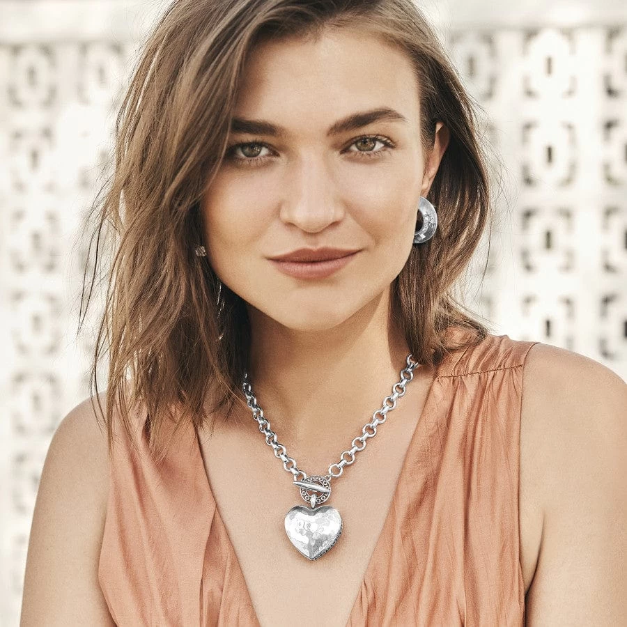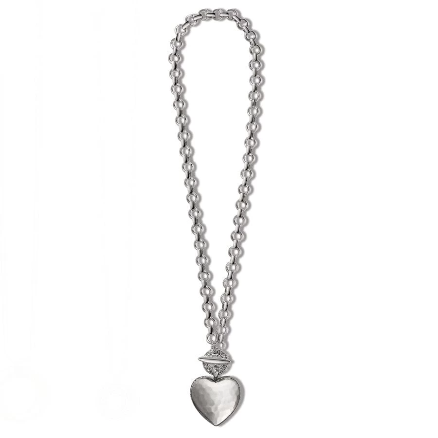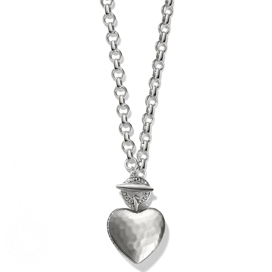 Suspended from its modern link chain and tethered by an artistic toggle, this sculptural heart pendant with artisan hand-hammering will be a showstopper with whatever you wear.