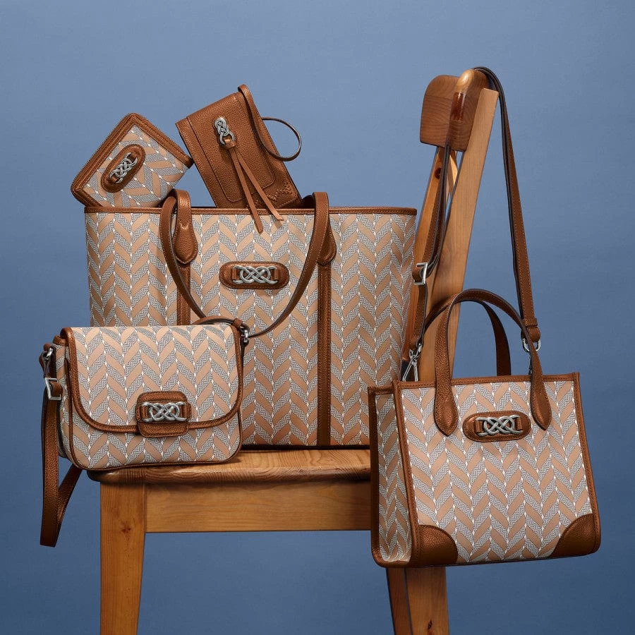 A stunning classic texture like the herringbone weave on this medium-sized wallet evokes refinement and longevity. It looks luxurious and also complements all the timeless Interlok jewelry.