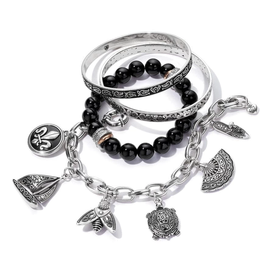 Break the pattern of wearing predictable bangles with these slim stunners filled with Damascene-inspired motifs.