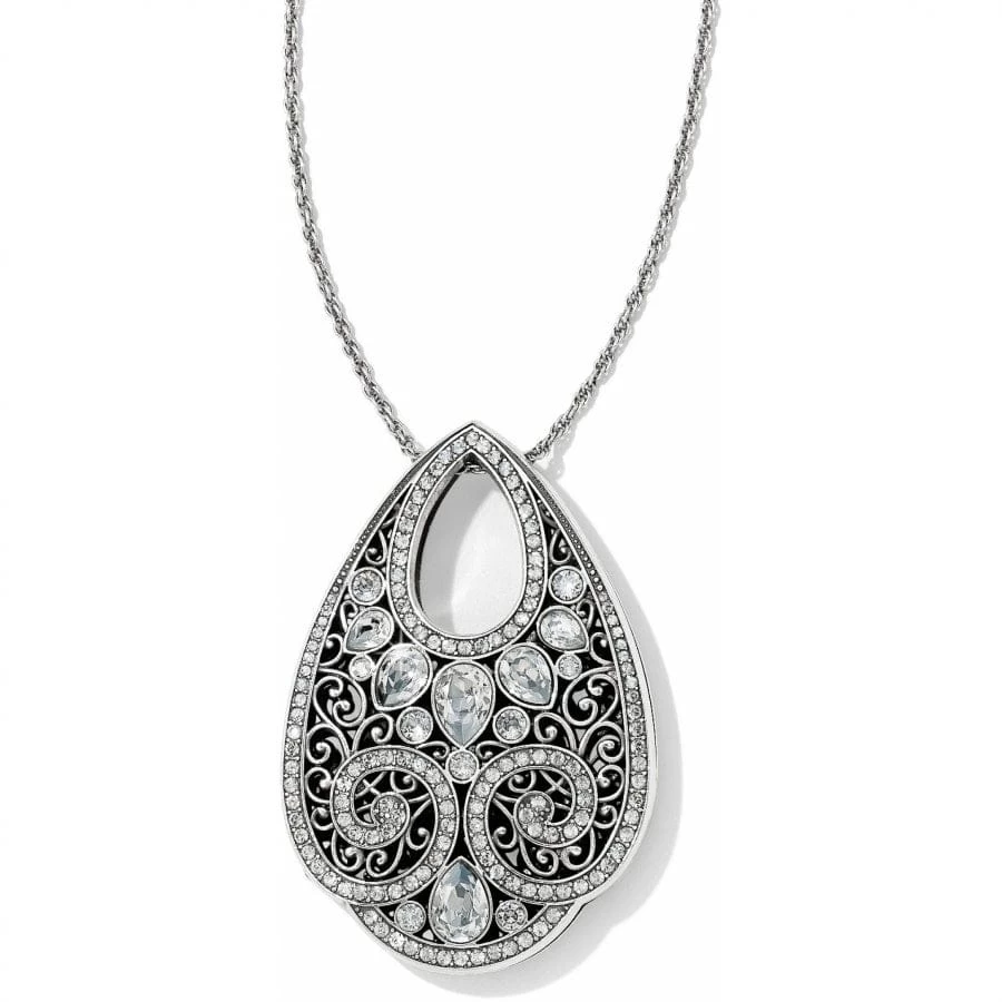 Inspired by Indian jewelry that glistens with rough cut diamonds, this teardrop pendant is intricately filigreed and utterly romantic in its motif. A statement piece with versatile chain adjustability.