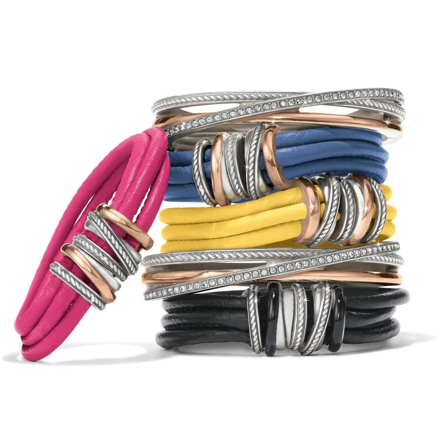 Glam it up with a little black dress or get casual with jeans and a tee – this multi-tiered leather bracelet with distinctive Neptune’s Rings jewelry accents is a perfect outfit-completer.