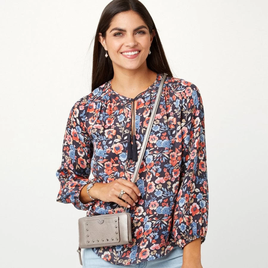 Contemporary and sleek, this studded wallet packs a style punch. We love its smartphone-friendly size and its detachable strap–perfect from desk to dinner!