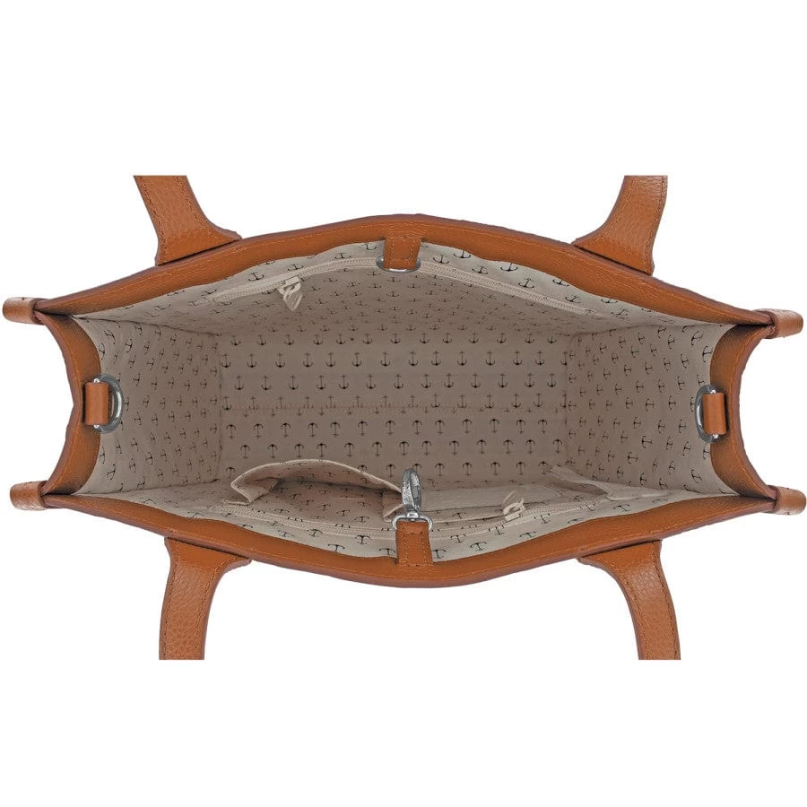 This nautically-inspired tote features emblems of the seagoing life, with our designer’s art adorning the entire bag, including the side gussets – which have a different design. Natural vegetable tanned leather trim is the perfect finishing touch.