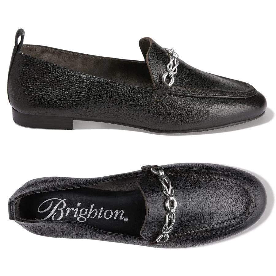 This easygoing, softly construction, ballerina-inspired buffalo leather loafer is distinguished by diagonal hand-laced leathers and the intertwined Celtic knot of the Interlok Collection. A padded insole gives it extra comfort.