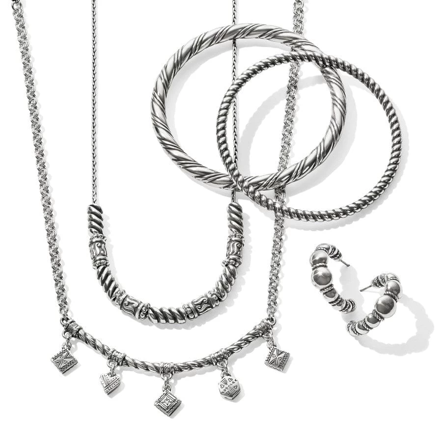Combinations of medallions, silver balls and swirls reflect artisan metalsmithing techniques on this necklace that is beautiful worn solo or layered.